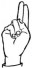 На ћирилици написано КАЋА МИНИЋ састоји се из 9 слова [?]. Исписано ћириличном једноручном азбуком за глувонеме: